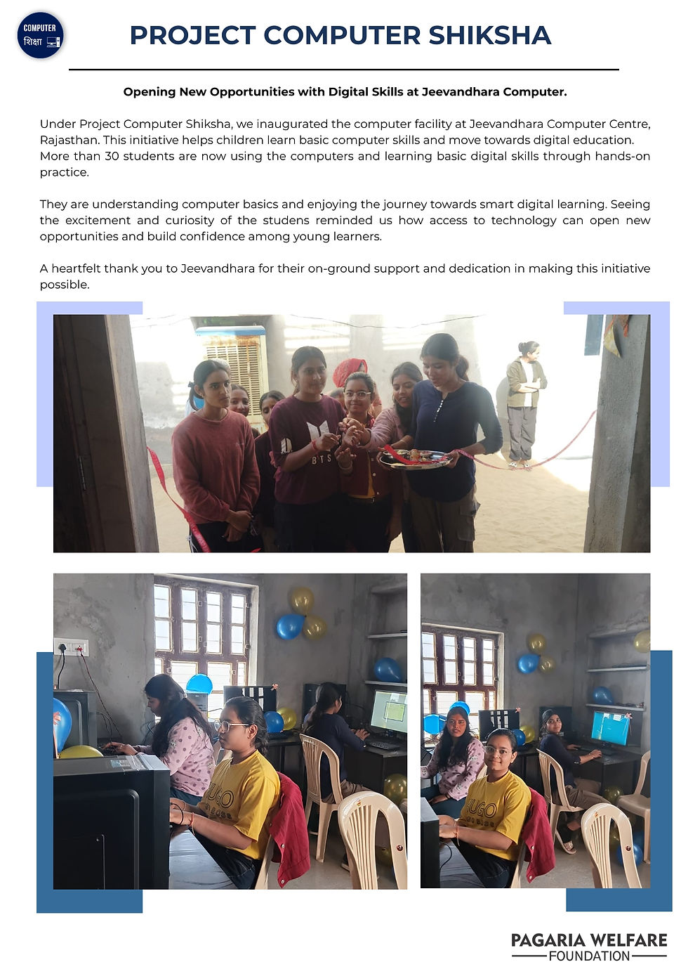 #PagariaWelfareFoundation #NGO #ProjectShiksha #ProjectKhilona #ProjectLaadli #ProjectPustak #ComputerShiksha #QuarterlyImpact